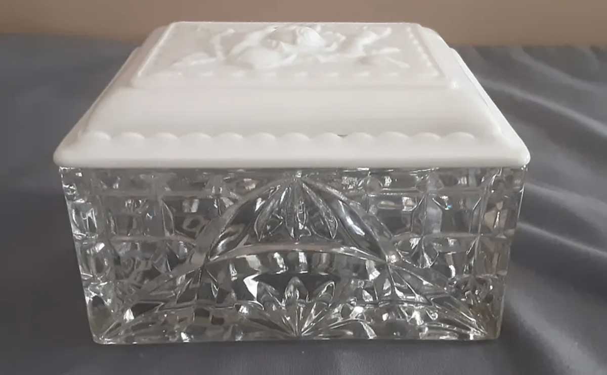 While the Jadeite doesn’t appear to have been listed in any Anchor Hocking catalogs with the Crystal Cigarette Box, I’m including it here in case you might want to collect all the rose-embossed lid colors. I intend to! But then I adore roses. Happy hunting.