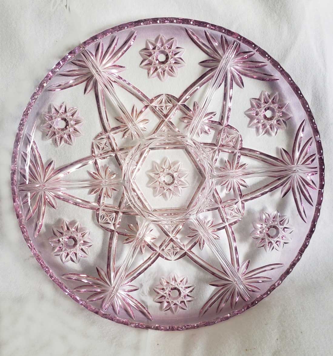 Crown Crystal Glass Company in Australia designed this EAPC 7-Part Divided Platter in Crystal and Rose-Lilac. While they copied Anchor Hocking’s Early American Prescut pattern, this piece itself is an original. Anchor Hocking never made a 7-Part EAPC Platter.
