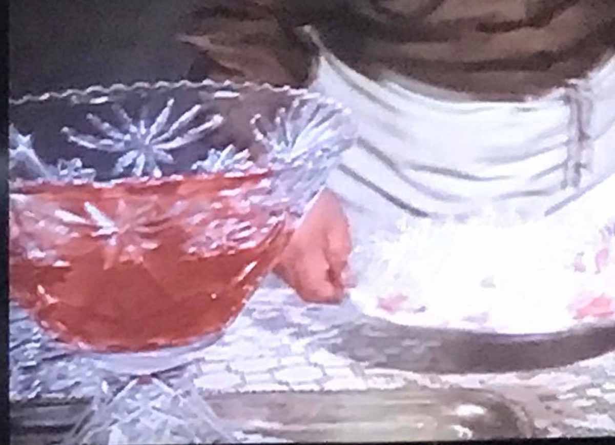 Ye old Punch Bowl makes an appearance in Season 4 of Downton Abbey, but not the cups!Our beloved Punch Cup was sighted in the future – 2258 – and in space no less! Tina McDuffie caught Ivanova with it while watching Babylon 5. Munsters Cheerios commercial: Herman is using an EAPC Small Serving Bowl…… a closer look at the Small Serving Bowl as Herman pours Cheerios…… Cheerios, part of a complete breakfast – in a Small Candy Dish Bowl.The Partridge Family has the whole Breakfast Set! Sighted by Kristie Crusenberry. The Partridge Family has the whole Breakfast Set! Sighted by Kristie Crusenberry. The Partridge Family has the whole Breakfast Set! Sighted by Kristie Crusenberry.The Partridge Family has the whole Breakfast Set! Sighted by Kristie Crusenberry. Here we have an anachronism: wrong 60s! Bonanza was set in 1861 thru 1867. Guess this EAPC Punch Bowl with Stand time traveled.Large Candy Bowl sighted by Suzy Graves in Catering Christmas, a 2022 movieLarge Candy Bowl sighted by Suzy Graves in Catering Christmas, a 2022 movieLarge Candy Bowl sighted by Suzy Graves in Catering Christmas, a 2022 movieShe’s using an EAPC Vase in this Hallmark movieAnother Punch Bowl sighting. This time in Ruby Herry: Prediction Murder a Hallmark MysteryKaren A. Detty noted this Large Vase in use in the movie Queen Bees.Looks like a Large Vase sighted in When Calls the HeartThe Divided Oval Tray assisted in this MilesKimball-com catalog caught by Carolyn Sue Cowley Mankins-HurstThe Divided Oval Tray assisted in this MilesKimball-com catalog caught by Carolyn Sue Cowley Mankins-HurstPunch Bowl on coffee table in That 70s Show, Halloween Episode, Season 2, Episode 5…… Looks like they were using the Punch Cup, too….… Kitty flashes back to Halloween 1957, when the Formans first moved into their current home.