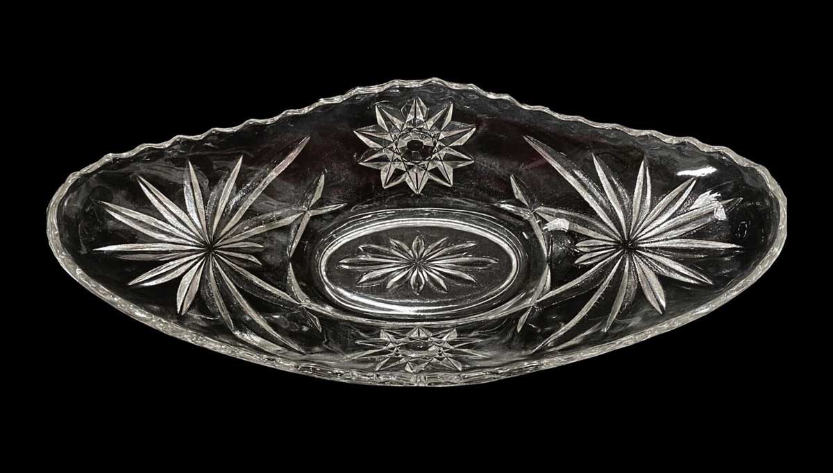 1847 Rogers Bros Stainless Pierced Spoon and Early American Prescut Crystal 9 3/4″ Gondola Dish 2 Pc Relish Set